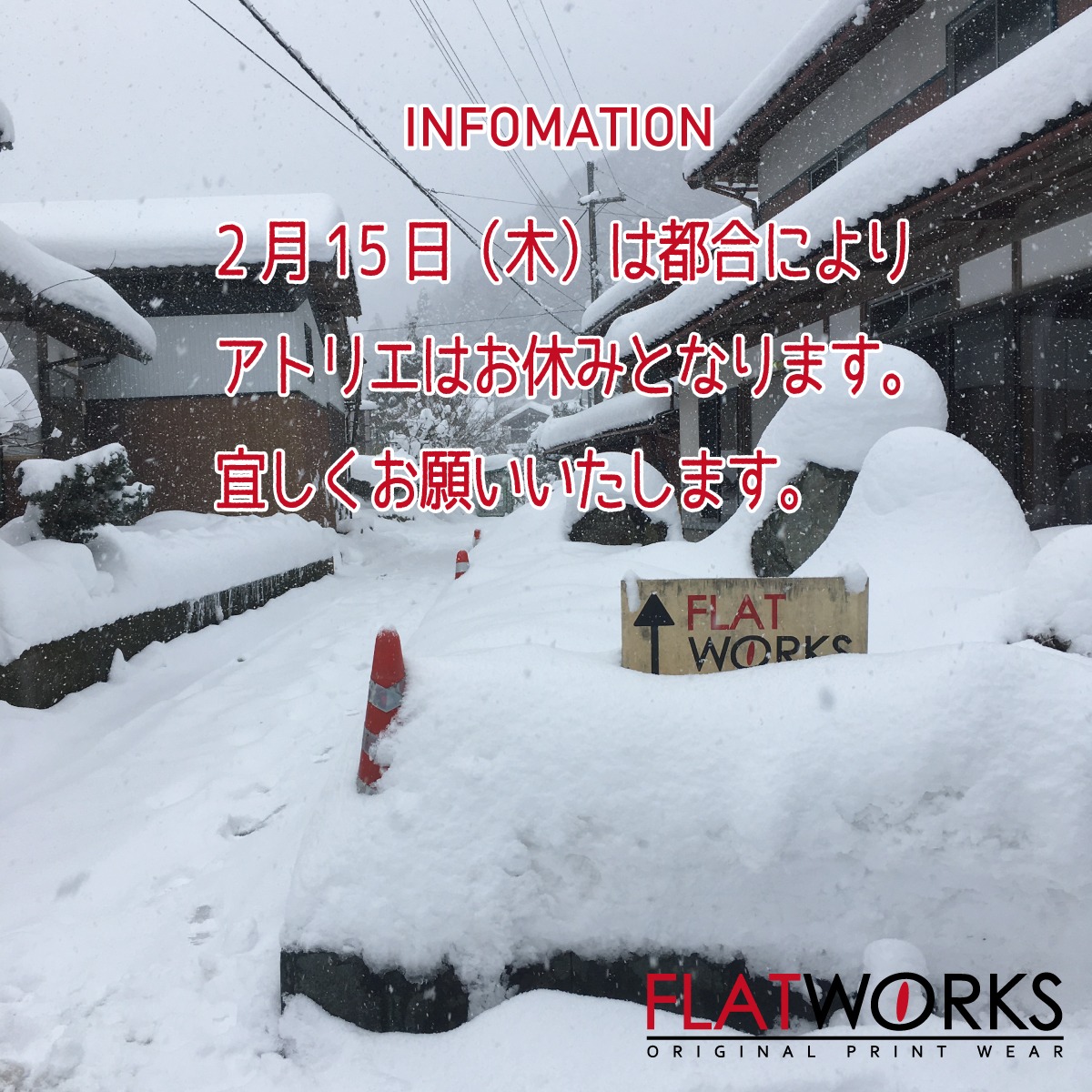 ※2月15日(木)アトリエ休業のお知らせ | FLATWORKS
